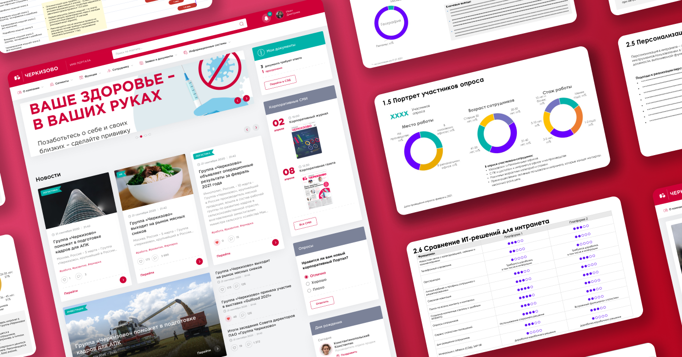 Оценить текущий статус интранета Группы «Черкизово». Изучить целевую аудиторию, собрать требования заказчиков. Разработать решение по обновлению концепции интранета, в том числе информационной архитектуры, навигации и дизайна. Провести сравнительный анализ интранет-продуктов и дать рекомендации по выбору ИТ-решения.