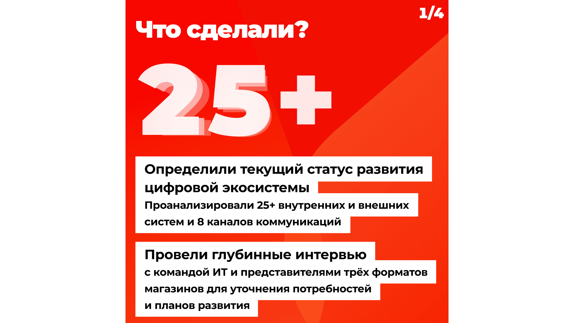 Проанализировали 25+ внутренних и внешних систем и 8 каналов коммуникаций.